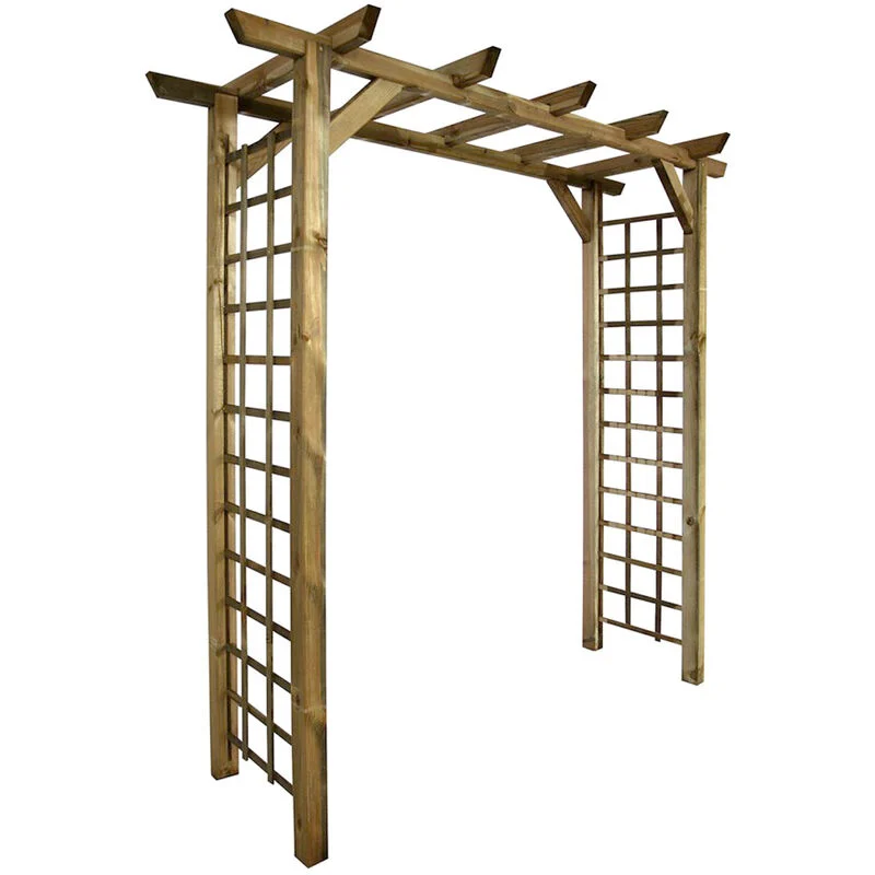Habillez en clin d'oeil votre jardin d'une magnifique pergola en pin sylvestre traité autoclave aux dimensions généreuses : L 214 x prof 53/72 x ht 210 cm.
