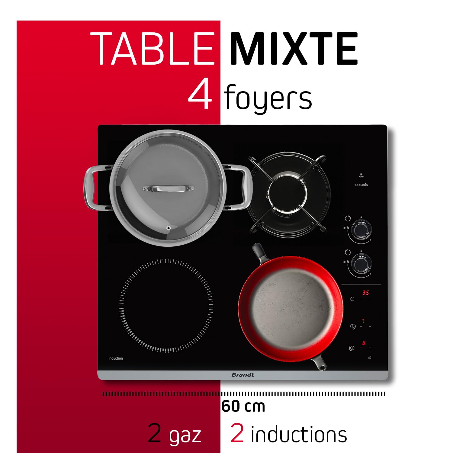 - LE MIXTE GAZ ET INDUCTION : Vous pourrez obtenir une cuisson au gaz précise grâce à un contrôle facile de la flamme. La plaque induction sera une nouvelle option pour obtenir une cuisson rapide !
