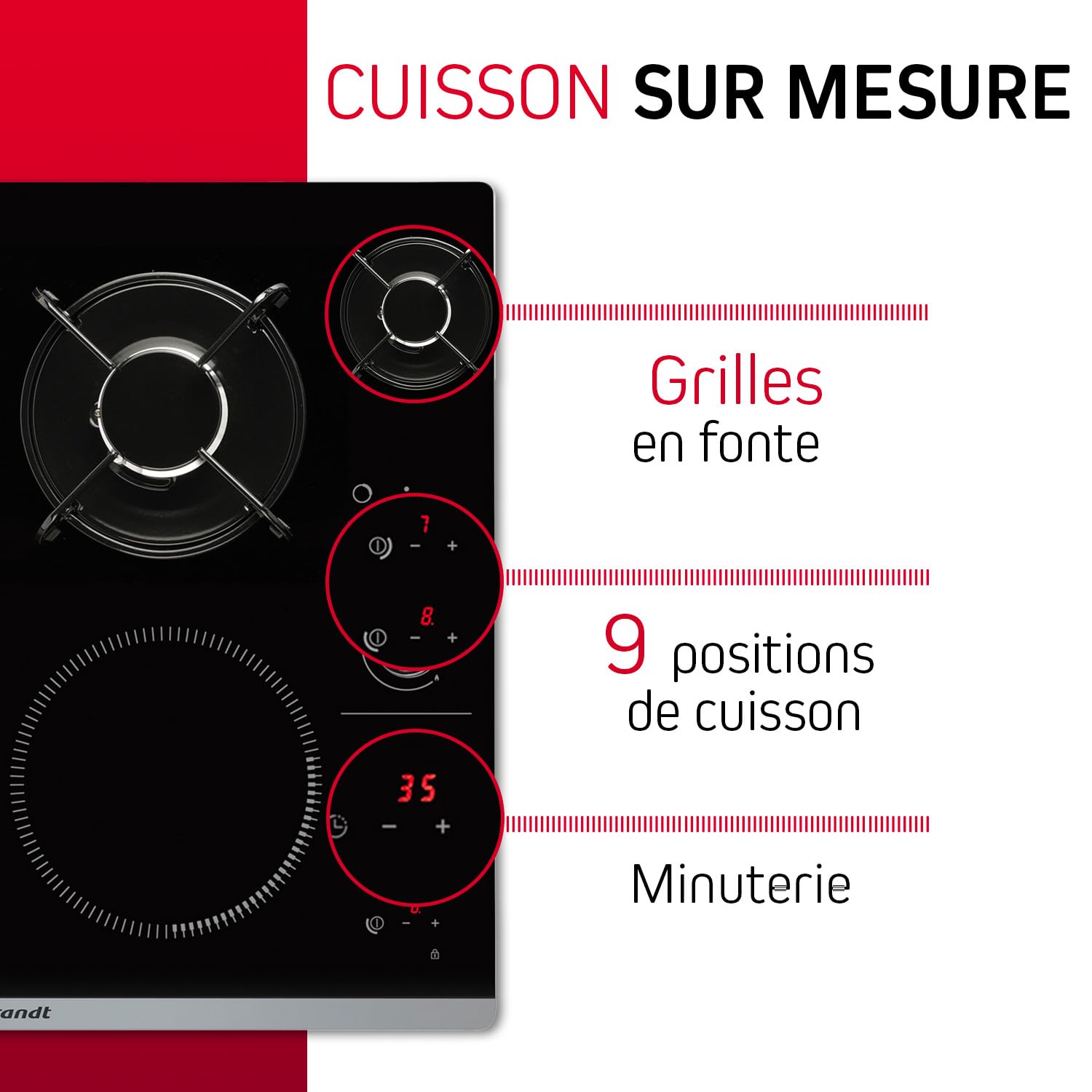 - QUELLE TECHNOLOGIE : Les 9 positions de cuisson par foyer permettent de réaliser les plats avec efficacité et précision.