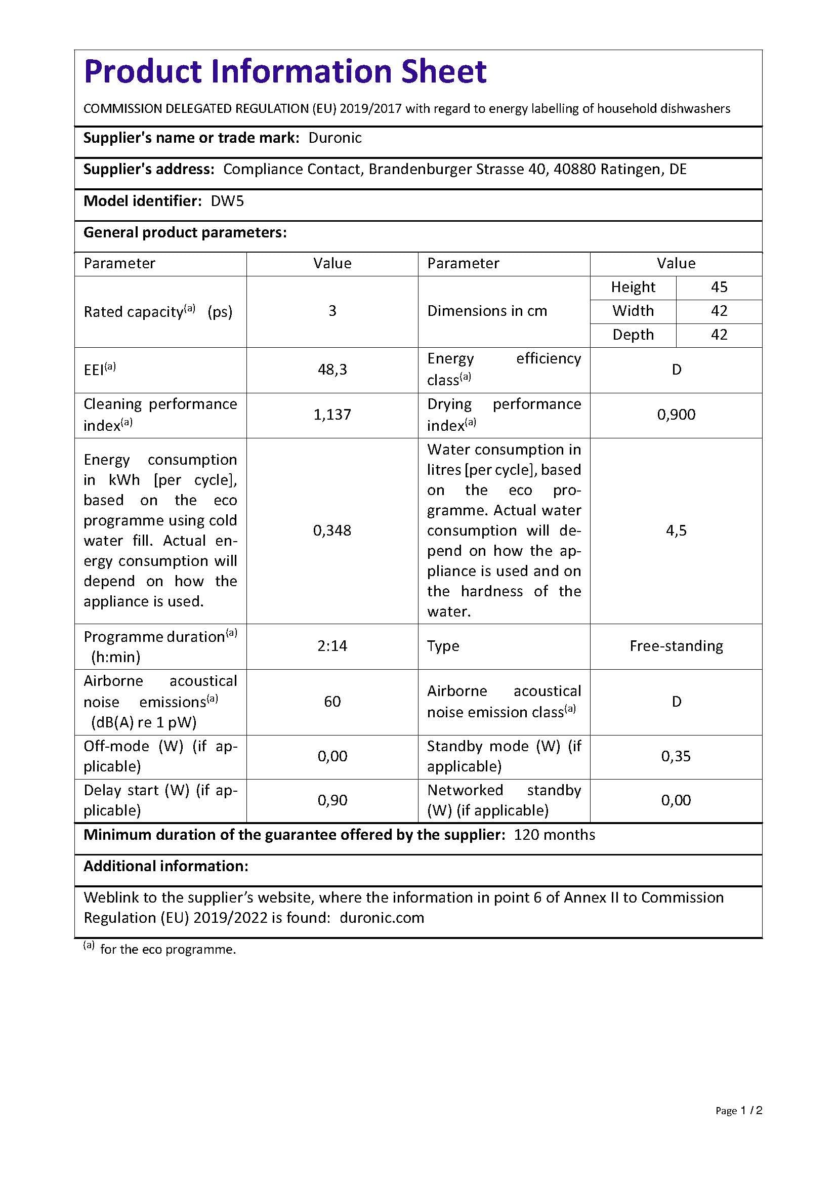 - Découvrez le lave-vaisselle posable Duronic DW5, idéal pour les petites cuisines et petits espaces avec des dimensions compactes de 42,8 x 42,5 x 45,8 cm. Ce lave vaisselle s’adapte parfaitement aux studios et petites cuisines tout en offrant une performance de lavage exceptionnelle grâce à sa puissance de 950W et une faible consommation d’eau de seulement 5 litres par cycle. Le lave vaisselle DW5 offre une solution compacte sans faire de compromis sur les performances de nettoyage.