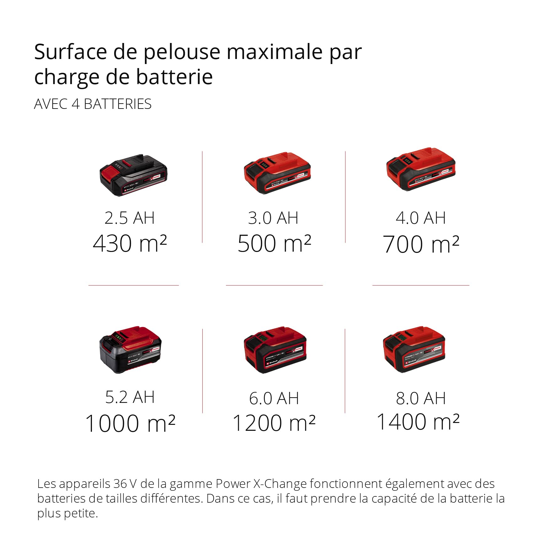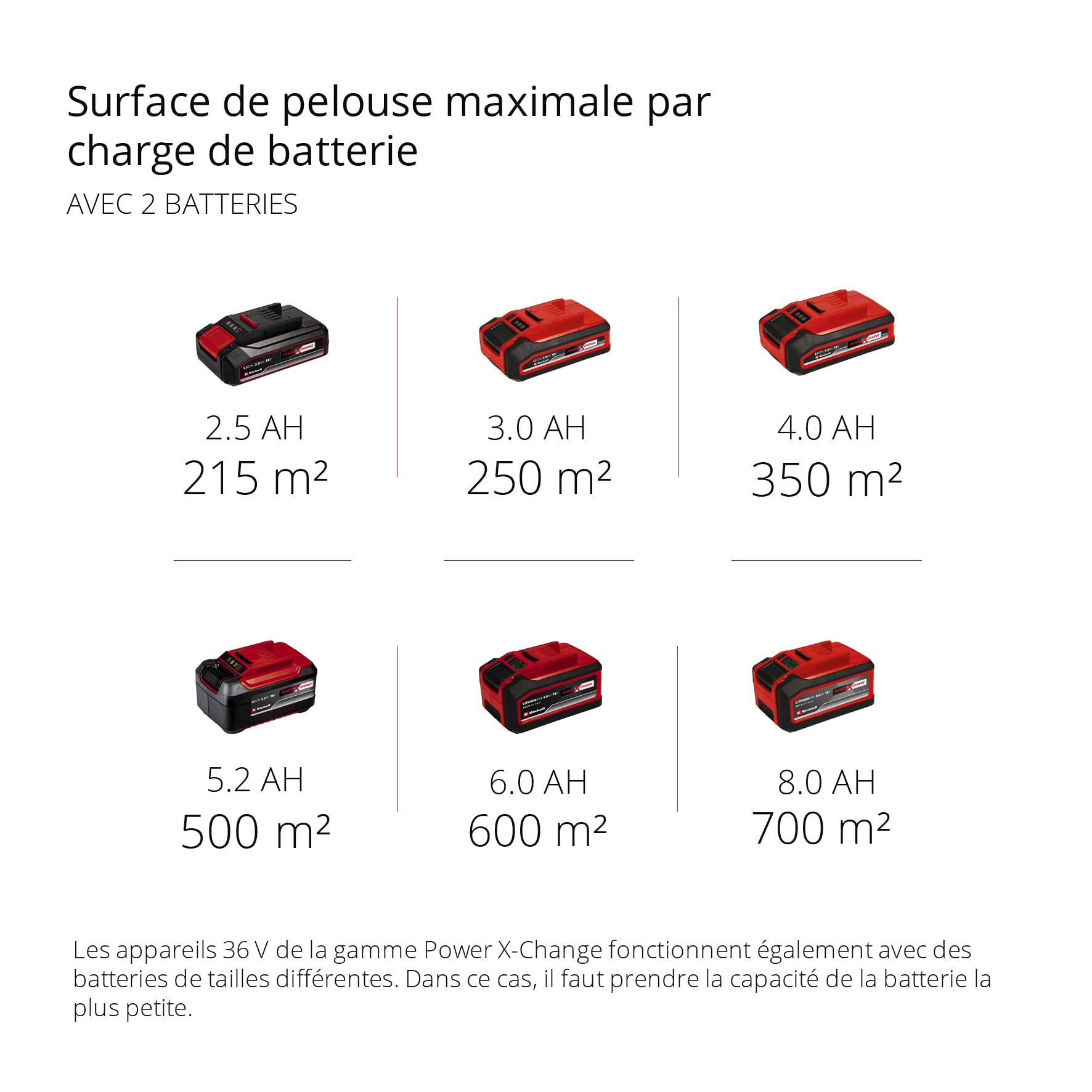 - Tondeuse à gazon sans fil 36 V pas de cbles gênants, pas de chutes gênantes, pas d'essence, pas d'huile moteur, pas de gaz d'échappement malodorants. Il suffit d'insérer les batteries Power X-Change 18 V, de démarrer le moteur sans effort et de profiter de la liberté sans fil