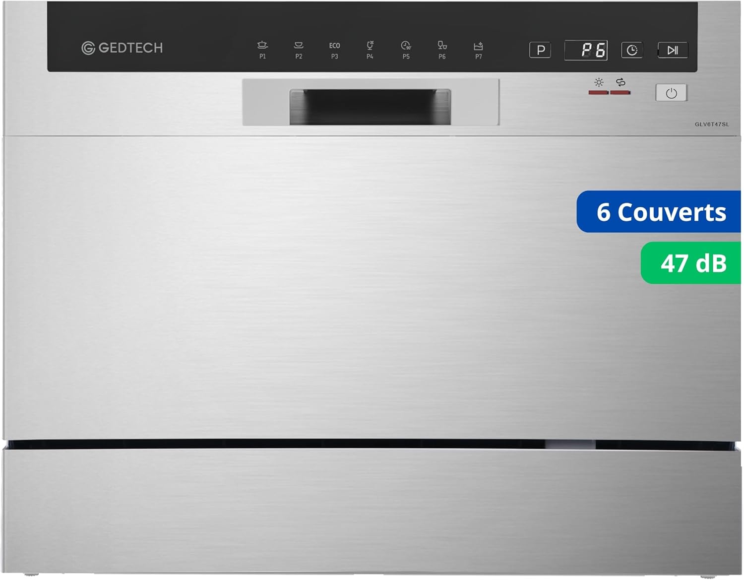 Le lave-vaisselle Compact GEDTECH GLV6T47, d’une capacité de6 couverts, bénéficie de nombreux programmes dont le programme Economique ou différé. Declasse énergétique D, ce lave-vaisselle consomme en moyenne 10 % moins d’énergie par rapport à un modèle classique.