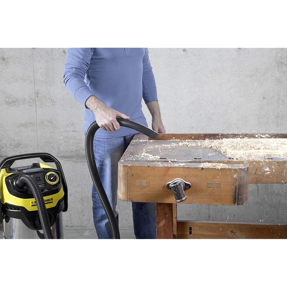 Le nec plus ultra du bricoleur pour votre véhicule, garage, sous sol, cave, atelier et le bricolage grâce à sa prise outils électroportatifs Le WD6P Premium, est aussi puissant qu’un aspirateur 2000W avec une consommation de seulement 1300 W. Il est idéal pour l’aspiration de poussière, gravats et liquides. Ergonomie révolutionnaire grâce à sa cassette pour filtre avec système de nettoyage intégré.