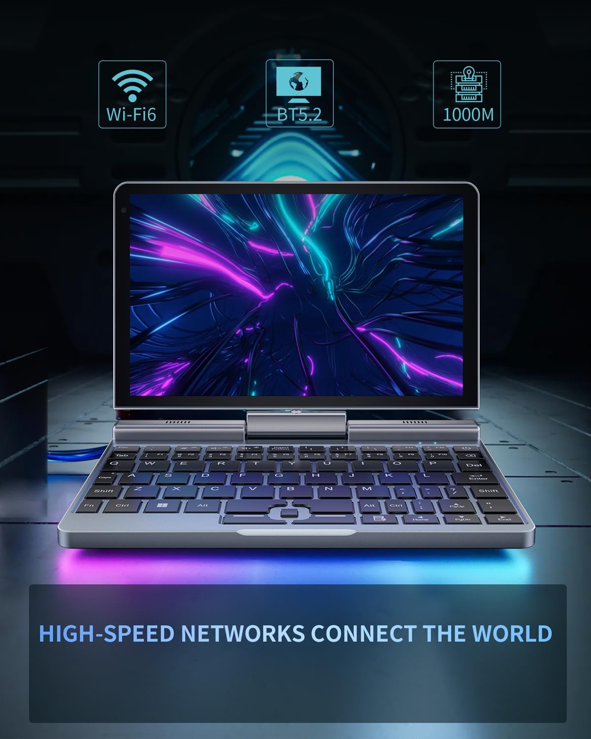 Connectivité améliorée pour une efficacité maximale : restez connecté avec Wi-Fi 6 et Bluetooth 5.2. Ce mini ordinateur portable dispose de plusieurs ports, y compris USB-C, USB 3.0, HDMI et RJ45, vous permettant de vous connecter facilement à d'autres appareils, de transférer des fichiers rapidement et de profiter d'appels vidéo et de présentations fluides