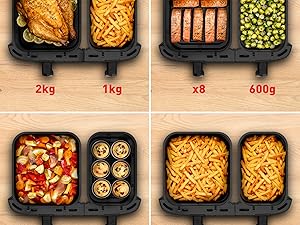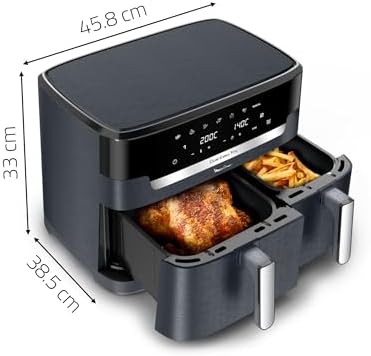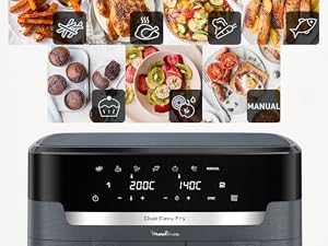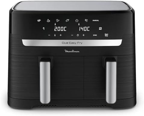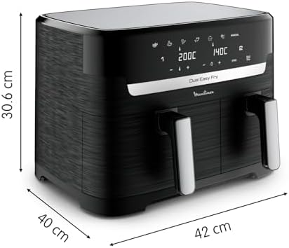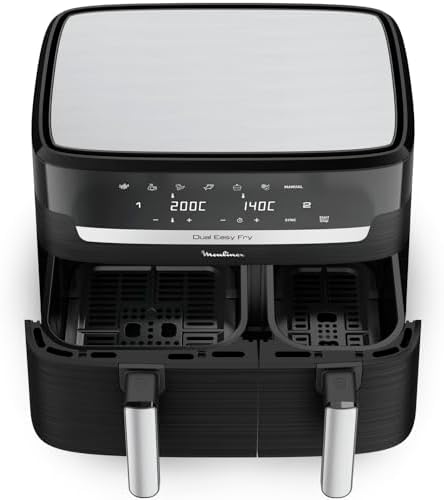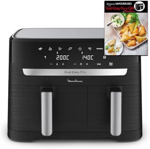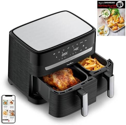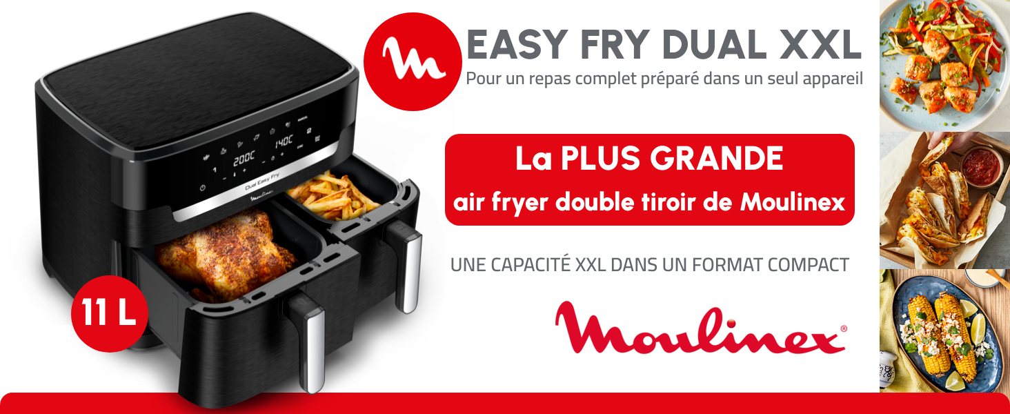 | DES REPAS COMPLETS EN QUELQUES MINUTES: cuisinez deux ingrédients différents en même temps, pour un repas complet préparé dans un seul et même appareil grâce à cette double friteuse à air avec cuisson synchronisée LA PLUS GRANDE DUAL AIR FRYER DU MARCHE: capacité XXL (11L) avec un tiroir de 6.5L pour les pièces volumineuses comme un rôti de 2kg et un tiroir de 4.5L pour les accompagnements comme des frites, idéale pour 6 à 10personnes POLYVALENCE MAXIMALE: 7programmes prédéfinis (frites, poulet, légumes, poisson, desserts, déshydratation et contrôle manuel de la température de 40 à 200°C, pour des résultats parfaits à chaque fois PLATS ÉQUILIBRÉS: frites croustillantes ou saumon parfaitement grillé, préparez une multitude de plats savoureux et équilibrés qui plairont à tout le monde RÉPARABILITÉ 15ANS AU JUSTE PRIX: engagement de réparabilité 15ans au juste prix grâce à notre réseau de 6200réparateurs dans le monde, pour contribuer à la protection de l’environnement et à la réduction des déchets GAIN DE TEMPS ET D'ÉNERGIE: consomme jusqu'à 70% moins d'énergie et cuit jusqu'à plus 40% plus rapidement qu'un four traditionnel (tests effectués en 2024 avec des frites surgelées) NETTOYAGE FACILE: le panier de cuisson antiadhésif et compatible lave-vaisselle pour un nettoyage sans effort APPLICATION MY MOULINEX: avec l'application My Moulinex, découvrez des idées de recettes en fonction de vos goûts, du temps ou des ingrédients que vous avez, créez votre liste de course, planifiez vos repas et bien plus CONTENU: Dual Easy Fry XXL, 2grilles amovibles Afficher plus › Voir plus de détails | DES REPAS COMPLETS EN QUELQUES MINUTES: cuisinez deux ingrédients différents en même temps, pour un repas complet préparé dans un seul et même appareil grâce à cette double friteuse à air avec cuisson synchronisée LA PLUS GRANDE DUAL AIR FRYER DU MARCHE: capacité XXL (11L) avec un tiroir de 6.5L pour les pièces volumineuses comme un rôti de 2kg et un tiroir de 4.5L pour les accompagnements comme des frites, idéale pour 6 à 10personnes POLYVALENCE MAXIMALE: 7programmes prédéfinis (frites, poulet, légumes, poisson, desserts, déshydratation et contrôle manuel de la température de 40 à 200°C, pour des résultats parfaits à chaque fois PLATS ÉQUILIBRÉS: frites croustillantes ou saumon parfaitement grillé, préparez une multitude de plats savoureux et équilibrés qui plairont à tout le monde RÉPARABILITÉ 15ANS AU JUSTE PRIX: engagement de réparabilité 15ans au juste prix grâce à notre réseau de 6200réparateurs dans le monde, pour contribuer à la protection de l’environnement et à la réduction des déchets GAIN DE TEMPS ET D'ÉNERGIE: consomme jusqu'à 70% moins d'énergie et cuit jusqu'à plus 40% plus rapidement qu'un four traditionnel (tests effectués en 2024 avec des frites surgelées) NETTOYAGE FACILE: le panier de cuisson antiadhésif et compatible lave-vaisselle pour un nettoyage sans effort APPLICATION MY MOULINEX: avec l'application My Moulinex, découvrez des idées de recettes en fonction de vos goûts, du temps ou des ingrédients que vous avez, créez votre liste de course, planifiez vos repas et bien plus CONTENU: Dual Easy Fry XXL, 2grilles amovibles Afficher plus › Voir plus de détails |